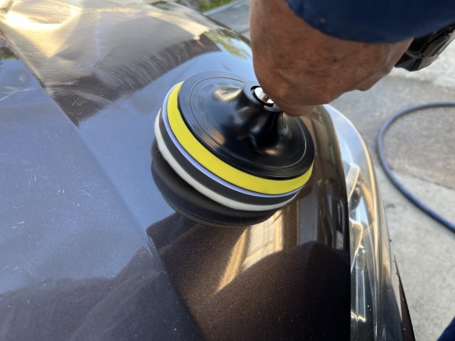 車のボディ 目立たない箇所でテストし、仕上げにワックスを使用