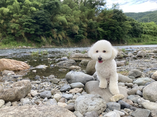 水量が少なく浅瀬が続くため、小型犬にも安心です。